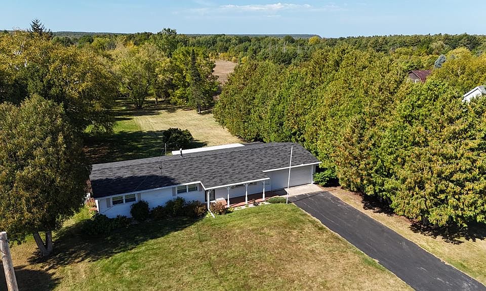 One of the greatest assets to this listing is the huge 1.25 acre lot in the city limits of Sturgeon Bay. Home is a 1973 Modular home=2006 Lennox furnace and A/C cleaned & checked in fall of 2024, roof last shingled in 2010, some updated windows throughout the home & in 2024 vinyl plank flooring installed in living room, dining area, kitchen & hallway. There is also an add on area to the back of the garage (12 x 12) where the working, older, lawn mower is included & an enclosed porch area from the back of the garage to the back door of the home. Selling AS IS