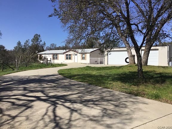 Home with detached Huge Shop on 1.4 acres of useable land.Home was built in 2004 with 3 bedrooms, 2 baths, living room and family room with formal dining room. Inside laundry room, new dishwasher, new wood stove. Refrigerator, washer dryer and riding lawn mower included. Land is level and useable with separate fenced areas for horses or livestock. Shop has 3 roll-up doors, with one side able to drive through to back yard. Side area with gates. Lots of concrete driveway parking with easy level circular driveway. Many trees, rose bushes and seasonal creek on one side of property. Only 1/2 mile to Copper Town Square & 4 miles to Copper Valley Golf Course. Copperopolis/Calaveras County has great dining opportunities, local school and medical/shopping. Located just 5 mins.to Lake Tulloch 4 fishing/swimming/boating. Lake Tulloch has 55 miles of shoreline with clean water coming in daily from the Stanislaus River. Home is Close to wine tasting in Murphys or snow skiing @ Dodge Ridge or Bear Valley. Approximately 2 hours from most Bay Areas and 45 mins from the Central Valley, easy off Hwy. 4 to commute.