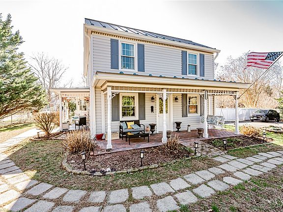 Modern Comfort Meets Rustic Elegance ~ Every detail has been updated for your peace of mind: new metal roof, vinyl siding, windows, HVAC, and hot water tank. The first floor features a primary bedroom with original flooring, a formal dining room with built in cabinetry and tray ceiling, and a spacious yet cozy and inviting living room. The bright and airy kitchen includes white cabinets, a farmhouse sink and newer vinyl plank flooring in keeping with that old world charm while maintaining an easy-to-clean modern space. Leading to the second story, is a gorgeously detailed staircase which is met by the original, restored pine floors, 3 additional bedrooms and a full bath. When touring, be sure to check out the added character on this level with its little windows (concealing attic access), the wood paneled ceilings and ledges for added storage or displaying treasures.