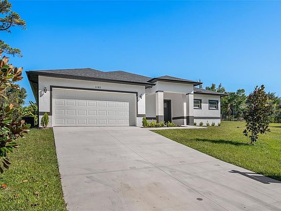 A Modern Oasis in Deltona, Brand new Home 3 Beds | 2 Baths | 1,600 SqFt Living | 2,272 SqFt Total | No HOA or CDD Step into elevated living with this brand-new, modern one-story masterpiece designed with exceptional style, comfort, and forward-thinking functionality in mind. Key Features That Set This Home Apart: - 9'4" bearing walls – offering soaring ceilings and a true sense of openness --fiberglass front door – energy-efficient with zero heat transfer and high-end curb appeal -Vinyl double-pane Low-E windows – energy-saving, noise-reducing, and UV-protective. 3 spacious bedrooms & 2 luxurious bathrooms - Gourmet kitchen with quartz countertops, large center island & stainless steel appliances - Soft-close cabinets & bold modern black accents - Elegant porcelain tile flooring throughout - Private lanai with access from both the master suite and kitchen – the perfect indoor-outdoor retreat - Recessed lighting, ceiling fans, and a spacious 2-car garage with opener - Built with private septic – save significantly on utilities - NO HOA / NO CDD fees – enjoy full ownership freedom! Located just minutes from I-4 and only 35 miles from Downtown Orlando, this home offers peaceful suburban living with quick access to the excitement of the city. Ready to tour this outstanding home. Contact me today—this opportunity won’t last long! Ask for our list of new constructions homes.