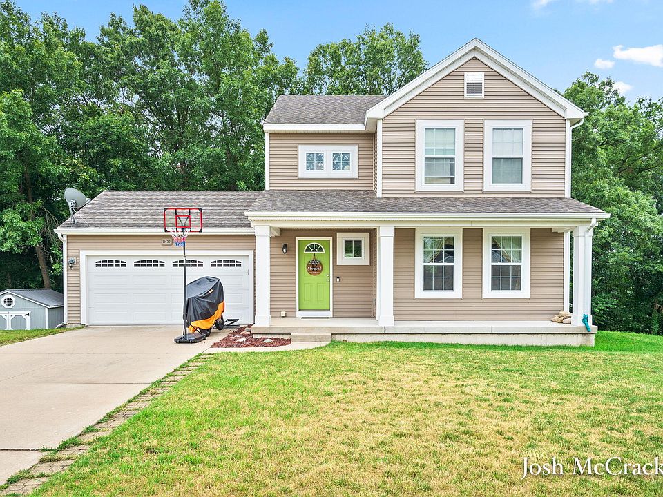 Discover your dream home in the coveted Whispering Hills subdivision of Lowell! This exceptional 2013-built residence offers a perfect blend of comfort, style, and location. Nestled on a premium lot backing up to a wooded area, this 4-bedroom, 3.5-bath home provides the ultimate in privacy and tranquility. With 2,350 finished square feet of thoughtfully designed living space, you'll find ample room for both family life and entertaining. The spacious open-concept layout features a large kitchen with modern appliances, a main bedroom with an en-suite bathroom, and a versatile walk-out basement perfect for a home office or recreation area. An back deck overlooks the private, tree-lined backyard, ideal for grilling, or outdoor relaxation and gatherings. The attached 2-car garage offers convenience and additional storage. This well-maintained home has been lovingly cared for by its original owners, ensuring top-notch condition throughout. Location is everything, and this property delivers! Enjoy the peaceful Whispering Hills community while being just minutes away from Lowell's charming downtown, excellent schools, and recreational opportunities. For those commuting to Grand Rapids, you're a mere 20-minute drive from all the excitement of the city. Don't miss this rare opportunity to own a slice of Lowell perfection. Schedule your private showing today and prepare to fall in love with your new home!