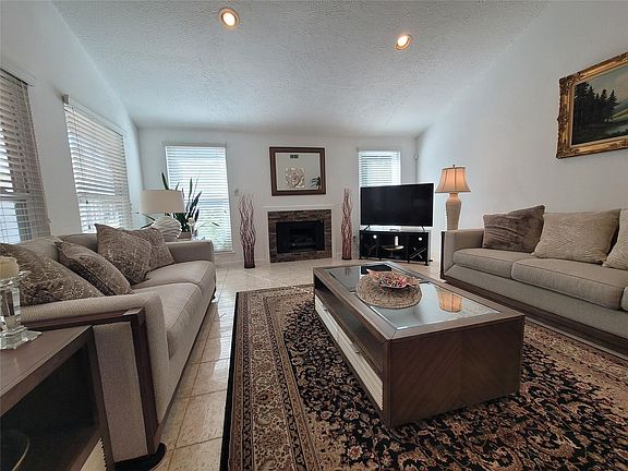 Hidden Gem in April Village! This beautifully maintained 4-bed, 2-bath home offers 2,260 sq ft of inviting living space and a spacious 2-car garage. A charming wrought-iron entry opens to the bright living area with fireplace and built-ins, flowing into a dining room and updated kitchen with granite breakfast bar, soft-close cabinetry, and stainless-steel appliances. Recent upgrades include a 17 SEER HVAC with new ducts (2017) and double-pane energy-efficient windows (2018). The split floor plan features a large primary suite with high ceilings, walk-in closet, and French-door access to the peaceful patio garden. Secondary bedrooms share a stylish bath with double sinks and private shower. epoxy garage floors, and sprinkler system add to the home’s comfort and charm. A true blend of warmth, functionality, and timeless appeal — ready for you to call home!