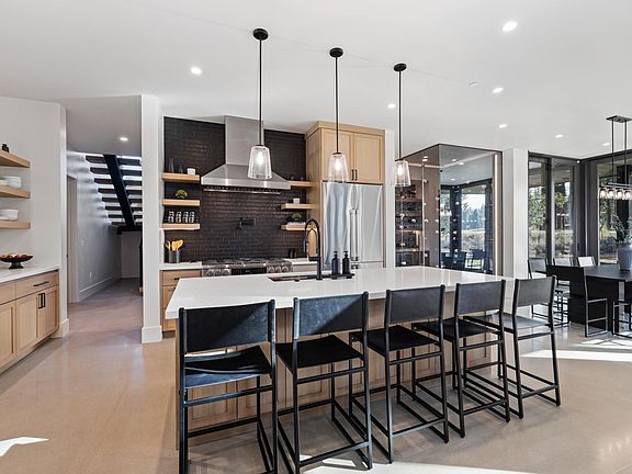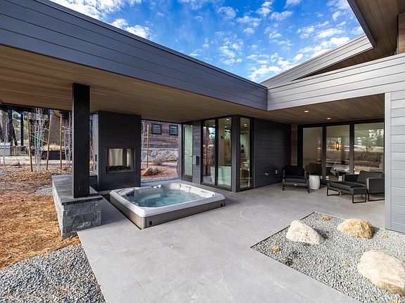 Enter the home through the 3 car garage or great room space. The mountain modern design features floor to ceiling windows throughout the great room, dining and master bedroom space, bringing the outside in with views from most main floor rooms. The home features luxury amenities throughout, as the Owner thoughtfully curated every detail, including a temperature controlled wine room, chef's kitchen, media room with movie projector, home gym, tesla charger, step in hot tub, 2 built in outdoor gas fireplaces, outdoor media, and more.