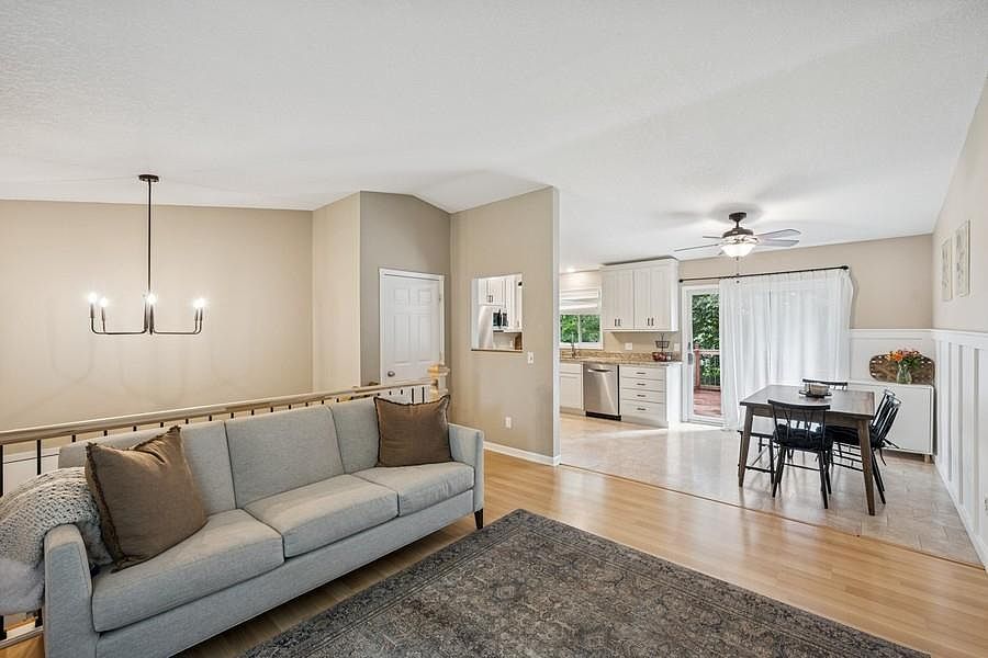 Multiple offers received! Highest and best due by 6:30 PM on 8/9/25! Welcome to this bright and beautifully updated 4-bedroom, 2-bathroom home located on a corner lot of a quiet cul-de-sac. Step into a refreshed interior filled with natural light, featuring board and batten accents and built-in shelving. The kitchen has been tastefully updated with granite countertops, updated cabinetry, and newer stainless steel appliances. The flow between indoor and outdoor living is seamless. A walkout deck off the kitchen leads to a spacious patio and a fully fenced backyard—ideal for hosting BBQs, enjoying peaceful evenings, or gatherings. The irrigation system helps keep the yard looking its best all season long. Located within walking distance to Andrews Park and Splash Pad, and just minutes from local shopping, dining, and schools. Commuters will appreciate the easy highway access for a smooth daily drive. Recent updates include a remodeled lower-level bathroom, new closet systems in two bedrooms, new dryer. The home also features smart home additions like a Nest thermostat and Arlo doorbell. Don’t miss the opportunity to own a well-maintained, character-filled home in a convenient and peaceful neighborhood.
