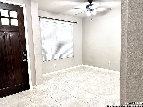 Beautiful 2-story home featuring 4 spacious bedrooms and 2.5 bathrooms, each bedroom equipped with ceiling fans for added comfort. The open floor plan offers a comfortable living space perfect for entertaining, including a separate dining area and a breakfast bar. The kitchen is equipped with modern appliances and gas cooking, making it both stylish and functional. Additional features include a water softener, a dedicated media room for movie nights or gaming, and a small loft ideal for an office or reading nook. Step outside to a private backyard oasis complete with a sparkling swimming pool, perfect for relaxing or hosting gatherings. Located off Galm Rd. with quick access to 1604 and just 15 minutes to UTSA, near shopping and dining.