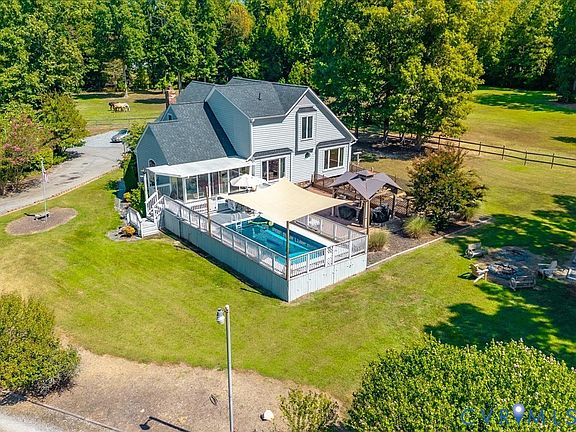Close your eyes and imagine spending warm summer days around your own private pool situated on a very private 16 acres. Or maybe watching your horses frolic in the snow covered pastures in the winter months, or roasting marshmallows for S'mores over the firepit. Or maybe planting a bountiful garden in the raised beds? Imagine only needing to step out your back door to ride your horse. Thsse are the future memories you will have at this beautiful home in the heart of Chesterfield. This home is located just minutes from all the great restaurants and stores in Midlothian. It has a 1st Floor Primary Bedroom plus and additional 3 or 4 bedrooms and has plenty of room for everyone. The 1st floor has a large open Great Room with gas fireplace that is flooded with natural light. The updated Kitchen features granite counters, stainless appliances, a glass cooktop, tile floors and backsplash. The kitchen opens on one side to the Great Room with a Breakfast bar, and the other to the Dining area. There is a glassed in "3-Season" porch off of the kitchen which overlooks the patio, gardens, and pastures. The oversized 1st floor Primary Bedroom has hardwood floors, a large closet, and large attached bath. One of the three additional bedrooms upstairs has hardwood floors, and two have newer wood-style LVP. There is a large bonus room that would make a great guest room or playroom plus two additional bathrooms. For horse lovers, the best part of this home lies outside the four walls of the home. A 5-stall barn with tack room opens to three large pastures/rings. The property can accomodate up to 9 horses and offers a great opportunity for boarding. Behind the house is a brick patio with covered seating area, a deck with above ground pool, and beautiful gardens, including raised beds for growing your own herbs and vegetables! All you need to do is start packing...the owners have done all the work for you including tankless hot water heater, new roof & skylights, new bathrooms, mini-split, air handler for HVAC, and pool liner.