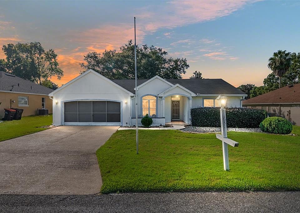 This charming 2-bedroom, 2-bathroom home features a desirable split layout and spacious 2-car garage. Inside, you’ll find luxury vinyl and tile flooring throughout most of the home, creating a clean and low-maintenance living space. The kitchen boasts crisp light cabinetry with plenty of storage and counter space, perfect for cooking and entertaining, while the main bathroom boasts a beautifully updated walk-in shower. Additional features include a Florida sunroom perfect for relaxing, a 2014 roof, and a 2012 AC. With a little TLC and updating, this home can truly shine. Residents of this community enjoy access to numerous amenities with six pools ( 1 indoor ), 5 Hot tubs - spanning across three different club houses! But it doesn't stop there.. Over a 150 clubs to join, two recently updated workout centers, Enjoy meals at the on-site restaurant or hit the greens at the community golf course. Plus, there's a dedicated dog park for your furry friends. This community ensures an active and fulfilling lifestyle. Don’t miss out on this opportunity to make this home yours!