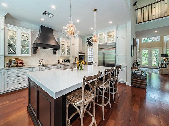 Wow, absolutely stunning, home in Gated Mandolin Estates. Beautiful four-bedroom, Bonus room and game room, three bath, three car garage pool home on a picturesque Water-view lot. The Professionally designed GOURMET KITCHEN is a chef's dream! Recently completed full kitchen renovation shines with brand new all wood custom cabinetry, stainless steel appliances, quartz countertops including double thick countertop island with a farm house sink. This magnificent home also includes new LED lighting and top of the line light fixtures. Perfect for entertaining inside and out: From the extra large kitchen/wine bar that leads to the bright and open family room and out the triple sliding glass doors to the extended screened pool patio. The first floor master suite features walk-in closets and an EN-SUITE bathroom. The luxurious bathroom includes a double vanity, spa tub and separate shower. Downstairs also has an additional bedroom and a formal living room which could be used as a game room/kid's play room or office. Upstairs there's two bedrooms and a large bonus separated by an open hallway with metal spindles. Once you step outside you will not want to come back in. located in a beautiful waterfront lot with a pair of Adirondack chairs inviting you to relax after a long day. The screened area has been enlarged to have plenty of screed space perfect for a large table or additional lounge chairs. What more could you ask for? Close to excellent schools, shopping, golf and multiple kids sports fields and activities.
