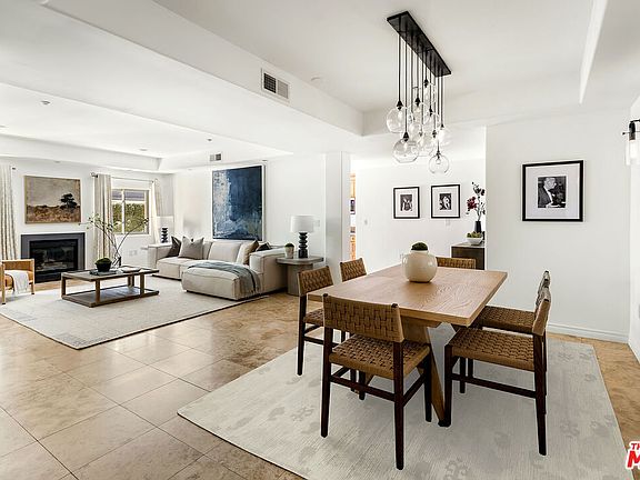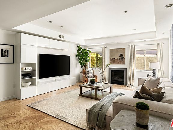 Located on one of Brentwood's most charming tree-lined streets, this 2-bedroom, 2.5-bath condo offers a rare blend of privacy, space, and prime Westside living. Elevated above street level with no neighbors below, the unit features direct entry through a private side patio, providing a unique sense of seclusion and ease. The open-concept layout spans approximately 1,500 square feet and features high ceilings, travertine floors, and a generous living area with plenty of space to relax or entertain. The kitchen is outfitted with stainless steel appliances, oak cabinetry, and ample storage, with room for a breakfast nook and access to the side patio. The spacious primary suite includes a walk-in closet and an en suite bathroom with dual vanities, a soaking tub, and a separate shower. A second bedroom with its own en suite bath offers flexibility for guests or a home office. A separate laundry room with side-by-side washer and dryer adds everyday convenience. Additional highlights include central HVAC, a gas fireplace, and two tandem parking spaces in a secure, gated garage with available EV charging. Set in a quiet, 11-unit building, this home blends the comfort of residential living with close proximity to San Vicente's top restaurants, cafes, parks, and the beloved Brentwood Farmers Market.