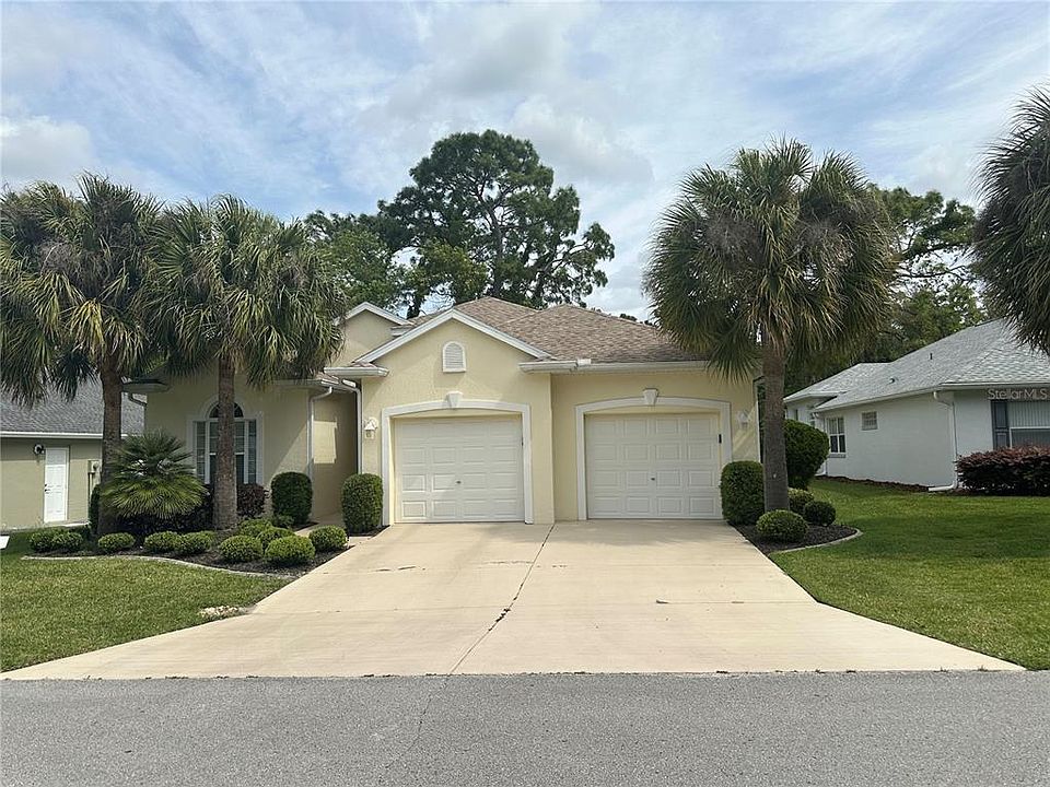 Welcome to this inviting Golf Course Home overlooking the 7th Tee. With a charming 3 bedroom, 2 bathroom layout, this residence features the popular Santorini open floor plan, accentuated by vaulted ceilings and stylish Pergo flooring throughout. The heart of the home is a spacious kitchen boasting granite counters, pull-out shelves, and a delightful combination of hanging and recessed lighting. A generously sized walk-in pantry offers ample storage, while a glass-enclosed lanai and screened birdcage patio provide perfect spots for relaxation. Convenience meets elegance with an indoor laundry room and an oversized 2-car garage, complete with pull-down stairs for attic storage. The master bedroom is a sanctuary, boasting an en-suite bathroom, his and hers walk-in closets, and a private enclosed lanai. The home is adorned with accents of crown molding around doorways and windows, adding a touch of sophistication to every space. Don't miss the opportunity to make this gorgeous residence your own. HOA/Community service fee of $308/month includes mowing/irrigation, garbage/yard debris pickup, basic cable with community channel 12, use of amenities (golfing extra fee). Oak Run Country Club has a STATE OF THE ART VIRTUAL GUARD SYSTEM AT ITS GATES. There are 6 swimming pools, 5 whirlpools, library, 2 workout rooms, card room, billiard room, ceramics/craft room, on site restaurant(Oak Room Bar & Grill), driving range and an 18-hole golf course. Shuffleboard, pickle ball, horseshoes, bocce ball, tennis, & a Doggie Park. Lots of Clubs to join, offering something for everyone.