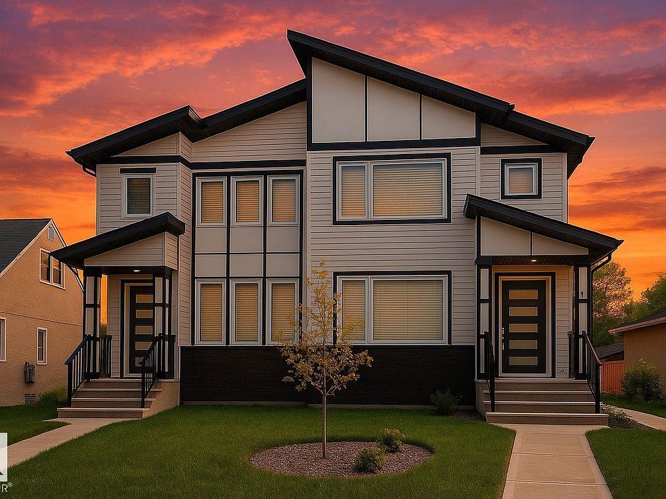 Introducing this exquisite custom-built duplex with NO CONDO FEES! Offering 3 spacious bedrooms, 2.5 luxurious baths, and a versatile bonus room, this home exudes sophistication. The main floor is a showstopper, featuring a stunning floor-to-ceiling custom-designed feature wall with a 3D fireplace, complemented by 9 ft ceilings throughout. The beautifully appointed kitchen w/s.s appliances at the rear of the home flows into a large dining area & an expansive living room, perfect for both intimate gatherings & entertaining. The spacious primary bed offers a full ensuite, a large closet & a beautiful feature wall. The basement, also with 9 ft ceilings, offers a SIDE ENTRANCE & is roughed in for a future LEGAL BASEMENT SUITE. Located just minutes from Westmount Shopping Centre, Ross Shep school, major hospitals, & top universities, this property is the ideal blend of luxury and convenience. Don't miss your chance to own this move-in read, fully landscaped, meticulously crafted home w/Double garage.