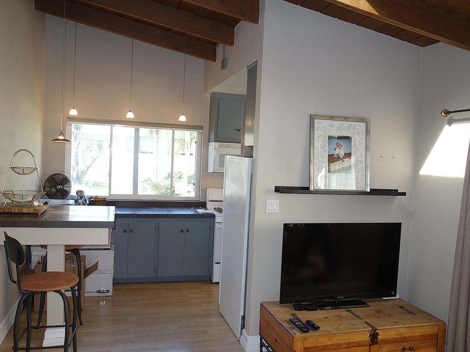 Lovely 2 bedroom 1 bath condo located in the heart of Brentwood! This beautiful Top Floor end unit is bright and spacious with only one common wall. Enjoy an abundance of natural light and skylight over the living/dining area. Living room features vaulted wood beamed ceilings and hardwood floors throughout. Unit also features ceiling fans in each room and plenty of closet/storage space including additional storage in the parking area. Brand new sliding doors have just been installed in the living room, leading to the private balcony. Conveniently located near trendy restaurants, shops and local hangouts! This beauty will not last long! Highlights * Open floor plan * Light and bright * Lots of storage space * Hardwood floor throughout * Private patio * Excellent Walk Score