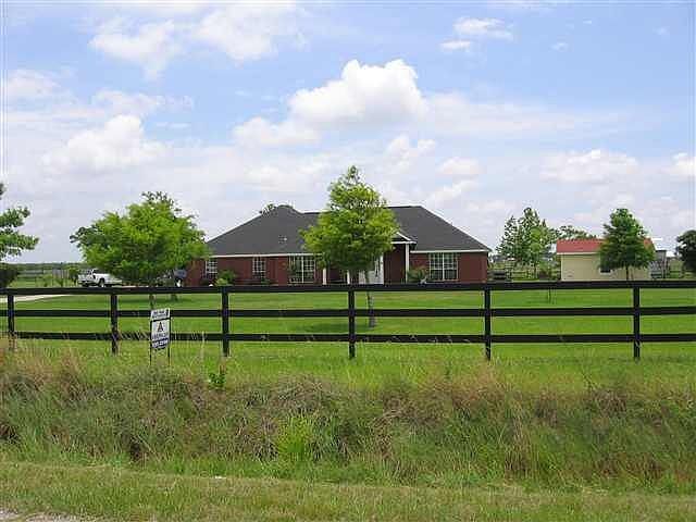 Lovely custom built home less than 10 yrs old. Main house is 3/2.5/2(1906 sq ft) Separate apartment is 1/1 and @480 sq feet. 4 horse stalls; tractor barn; 2 strg bldgs. 2 horse pastures; Much more. Apartment used as mother in law, could use for income producing. Beautiful piece of property located in quaint country location. High and dry during Ike. Flood zones B and C per Fema maps. Per seller: flood insurance not required.