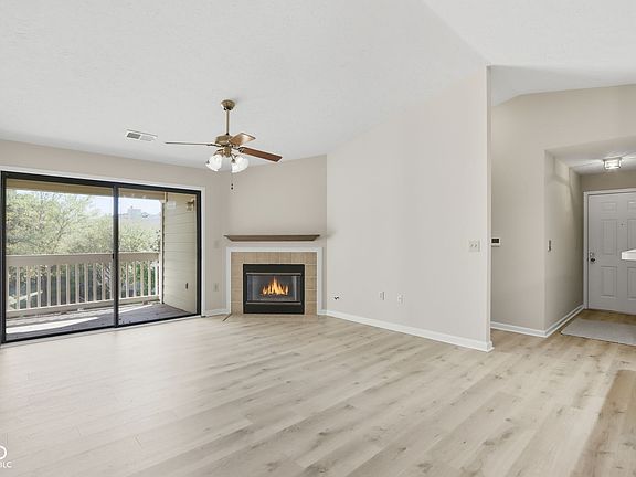 Check out this condo in lovely Lenox Trace! Home has been freshly painted throughout. All new LVP flooring and new carpet. Second floor location offers added privacy, cathedral ceilings, and fireplace. Enjoy the pond view in the back featuring 2 fountains. One of the best views in the community! This unit comes with garage #105 right across parking lot. Also reserved parking space #131 right in front. There are several guest parking spots in front of this building. Enjoy this well maintained community with an excellent location to everything Carmel has to offer.