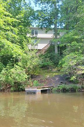 WATERFRONT Lake house with 3 large bedrooms 2 full baths. First floor master, laundry room, laminate wood flooring on 1st floor. Amazing views of lake and wildlife from the sliders across the back of the house leading to a 2 level deck and steps to the dock. Upstairs is spacious with 2 bedrooms, bath and a window seat. This house has a double lot = .50 acre w/secluded hideaway.