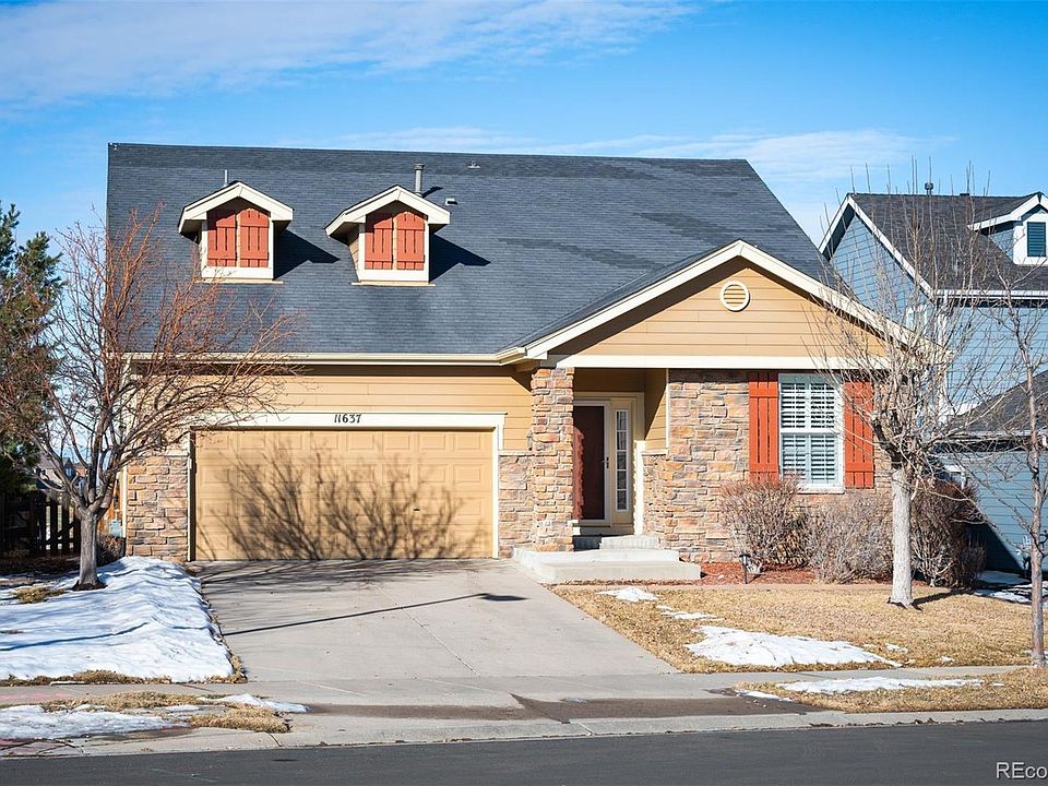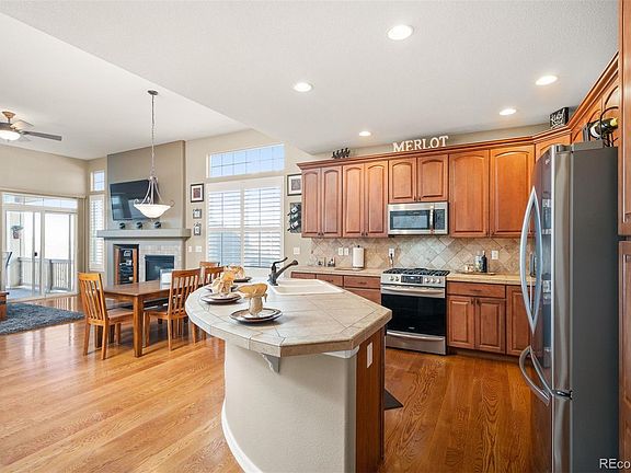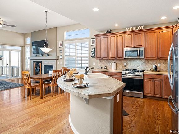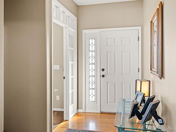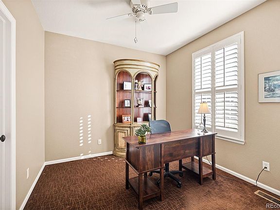 Perfectly situated on the 12th hole of the Black Bear Golf Club is a fabulous ranch-style home boasting 4 beds, 3 baths. The highlight of this home is not only the expansive golf course views, but the unobstructed and enthralling mountain views. This picturesque setting can be enjoyed from the primary bedroom, living room and backyard oasis featuring a covered deck and lower, multi-tiered patio. For the hot tub lovers, there is electrical set up for future jacuzzi installation. Inside, the open floorplan is ideal for entertaining and hosting friends or family. You are welcomed inside by gleaming hardwood floors, vaulted ceilings, and an abundance of natural light. Just of the entry is your first bedroom, currently used as an office with access to a ¾ bathroom. The main living space features the kitchen, living room and dining area allowing for an intimate setting. The kitchen is adorned with stainless steel appliances to include a gas cooktop, a rounded center island with breakfast bar seating and charming maple cabinetry. The living room features a gas fireplace and provides access to the covered deck. The primary suite is positioned in the back of the home, allowing for a relaxing retreat. You will take note of the vivacious views, plantation shutters, and luxurious 5-piece bathroom with a jetted soaking tub. The rest of the main level is comprised of 2 additional bedrooms, a full hallway bath and laundry room. The unfinished basement offers an additional 1,805 square feet that is ready to fulfill all basement dreams! With 4 egress windows and rough-in plumbing, the possibilities are truly endless. The location of this home is unbeatable as you can wake up with breathtaking views while also being in close proximity to your favorite amenities. Quick access to E-470, I-25, DIA and DTC provides ¬convenience to get where you need to go. Don’t wait – this one will check all your boxes!