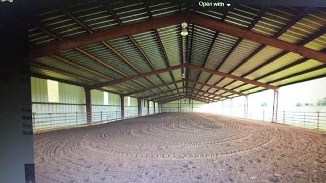 Excellent Equine facility with professionally designed building 70 x 200 for training and competition . Ever flowing artisan spring runs along west side. Building sites for homes in multiple locations. Reputation training facility in excellent community location.