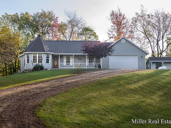 Immaculate 2x6 construction, custom built ranch home on 3.8+/- acres! This well taken care of home is ready for its new owners, and comes with everything you would ever want. The main floor has 3 beds, and 2 baths, which includes the master suite and a laundry right off of the attached and insulated two car garage. Check out the dining room with amazing cathedral ceiling, and great views of Fair Lake in the winter. The unfinished walkout basement is prepped and ready to be finished, complete with with a sealed floor and insulation. There is an office space already, and is plumbed for a 3rd bath, as well as a wet bar. Find two smaller pole barns - one with cement floor and 220, the other w/ water and electric outside for animals or RV hookup. Fiber internet ready and waiting for you!