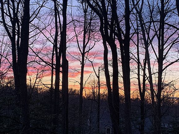 Enjoy breathtaking sunsets on the deck nestled among the serenity of trees.