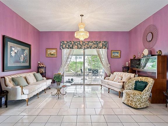 Private officeOpen flowing spaceTile flooringOversized screened-in patioMature landscaping
