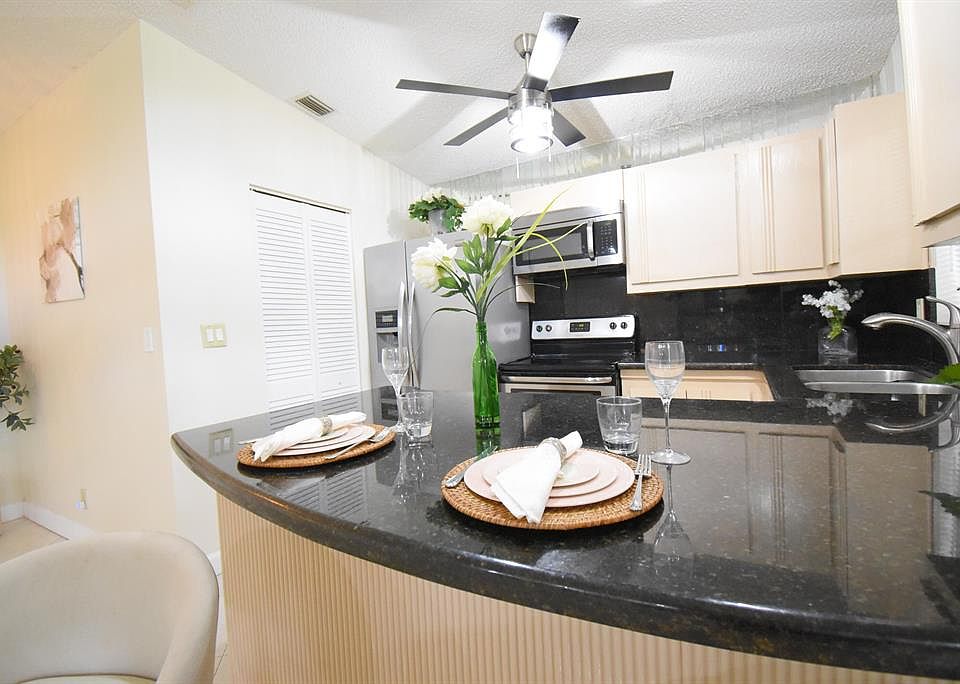 Wrap around granite counterHuge tiled porchCorner unitBig beautiful heated pool