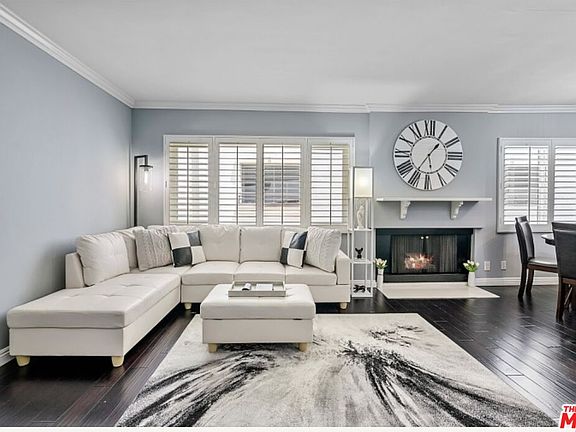 Stylish 1BR/BA condo in prime Brentwood! Tucked on a quiet cul-de-sac near Brentwood Village and Rec Center, this updated bright 4th floor unit features an open floor plan with a spacious dining/living room and gas-burning fireplace. The adjacent kitchen boasts stainless steel appliances, custom cabinetry and a breakfast bar. A generous primary bedroom and updated full bath. Other features include plantation shutters, crown molding, and three closets for tons of storage space. Updates include newly installed central HVAC system, dual-pane windows and a Nest thermostat. Building offers rooftop sundeck, community laundry and secure gated garage with one assigned parking space. Offered furnished or unfurnished. Low HOA dues include water, gas and earthquake insurance. No pet restrictions. Walk to shops, dining, Whole Foods and Barrington Park - a true Westside gem! Great investment or owner user!
