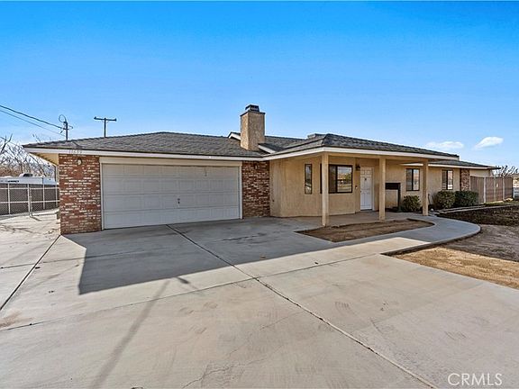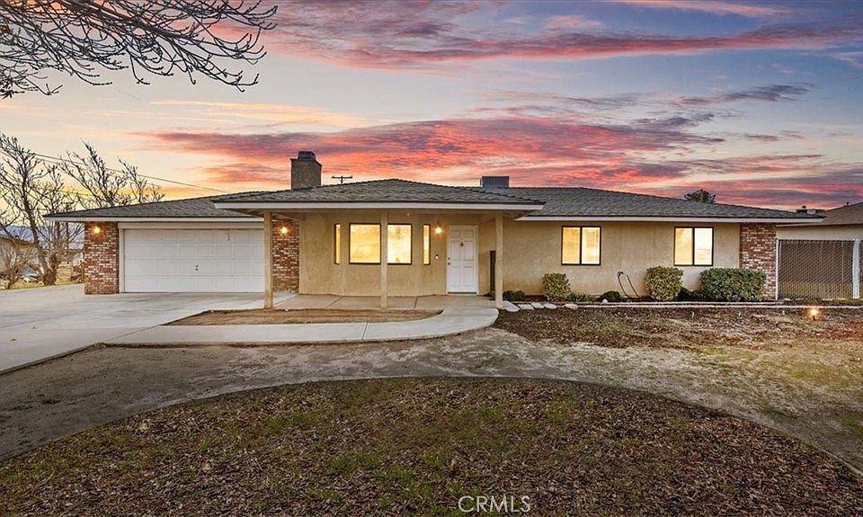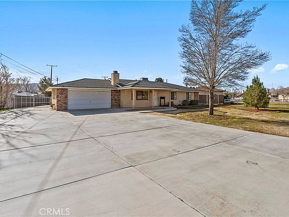This beautiful single-story home sits on a fully usable, fenced large lot offering wide-open space rarely found at this price point. A long concrete driveway with gated access provides ample parking for RVs, trailers, toys, or multi-vehicle households. Inside, enjoy a bright and welcoming layout with a spacious living room centered around a classic brick fireplace—ideal for cozy family nights or hosting guests. The dining area flows seamlessly into the kitchen, featuring white cabinetry, granite countertops, stainless steel appliances. Central HVAC and solar system. The primary bedroom offers comfort and privacy with its own bathroom and dedicated closet space, while two additional bedrooms are well-sized and versatile. Step outside to a backyard built for memories—covered patio, expansive concrete areas, mature trees, garden space, chicken-coop, and multiple storage sheds. Whether entertaining, gardening, or planning future expansion for ADU. This property offers true Apple Valley freedom with desert and mountain views with convenience shopping nearby. ~Must See~!!!
