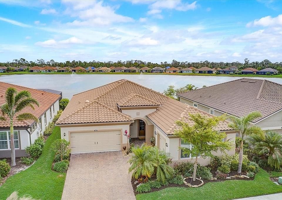 Don’t miss this opportunity to own this upgraded home in Renaissance! This unmatched 3 bedroom, 3 bath, 3 car garage home with bonus room has so much to offer. A gorgeous screened Lanai with a saltwater pool and entertaining space with a bar was added in 2020 to take advantage of the beautiful Florida sunsets. Inviting lake views capture your attention when you walk through the glass front door. There are many areas to gather and entertain throughout the home in this open floor plan. The large gourmet kitchen with white cabinets and quartz countertops, features stainless steel appliances, a large pantry, a farmhouse-style sink, and a large island. The master bedroom offers lake views through a wall of windows and a huge walk-in closet. The ensuite master bath has separate vanities, a garden tub, and a walk-in shower. Two additional bedrooms have lots of light and spacious closets. There are two additional bathrooms, one with a tub and the other with a walk-in shower. The main garage has shelving and cabinets and the separate 3rd garage has been upgraded with a mini split for AC and heat for a studio, office, storage, or 3rd car. Completing the package are feature walls, wood detailing on the ceilings, 8 ft. doors, tray ceilings, wood look tile and laminate flooring, ceiling fans, and a whole home reverse osmosis water filtration. The resort-style gated and maintenance-free community of Renaissance at Wellen Park includes a clubhouse, pool, tennis courts, pickleball courts, tot lot, and more. The community is minutes from the Atlanta Braves Spring Training facility that hosts games, events, and live music. Live just a short drive to world-class beaches, state parks, great schools, shopping, dining, entertainment, and more. Downtown Wellen Park is expected to open in the first quarter of 2023 and will have multiple restaurants, shops, entertainment, and a large lake to walk around. CDD Figure shown is included in tax figure shown.