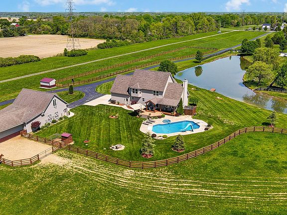 Welcome to paradise on 7.5 serene acres! A dream estate in Olentangy Schools. The acreage is incredibly unique with 4 board fencing throughout. There is a 125' x 65' multi-use outbuilding producing many income possibilities...horseboarding, boat and RV storage. The carriage garage and barn has 3 horse stalls with add'l capacity & an unfinished apt. space upstairs for another revenue stream. The home itself has an open floor plan that is perfect for entertaining with over 4,500 sqft. Off the kitchen leads to the extensive outdoor living space including a multi-level Deck, inground pool/hot tub, and a beautiful view to one of the two pastures. 5 bedrooms with 1 bedroom in the full finished LL with a full bath. Upstairs, the owner's suite has his/hers closets and dual vanities. See A2A and