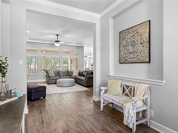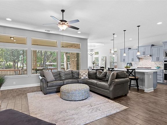 This gorgeous 3-bedroom, 2-bath home shows like a model and is nestled in a well-established neighborhood. From the moment you step inside, you’ll be captivated by the light-filled, open floor plan that’s perfect for both everyday living and entertaining. The spacious island kitchen features custom cabinetry, a farmhouse sink, gas cooking, and an abundance of counter space—truly a chef’s dream. The adjoining living room boasts a cozy gas fireplace and is flooded with natural light from the many windows throughout the home. The master suite is a peaceful retreat with direct access to the large covered patio—ideal for morning coffee or evening relaxation. The luxurious master bath offers a separate shower, a garden tub, double vanity, and ample space for comfort and convenience. The split floor plan ensures privacy, with two generously sized secondary bedrooms and a full bath on the opposite side of the home. Enjoy outdoor living year-round under the expansive covered patio, perfect for entertaining or unwinding after a long day.