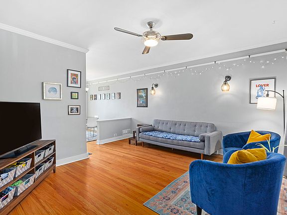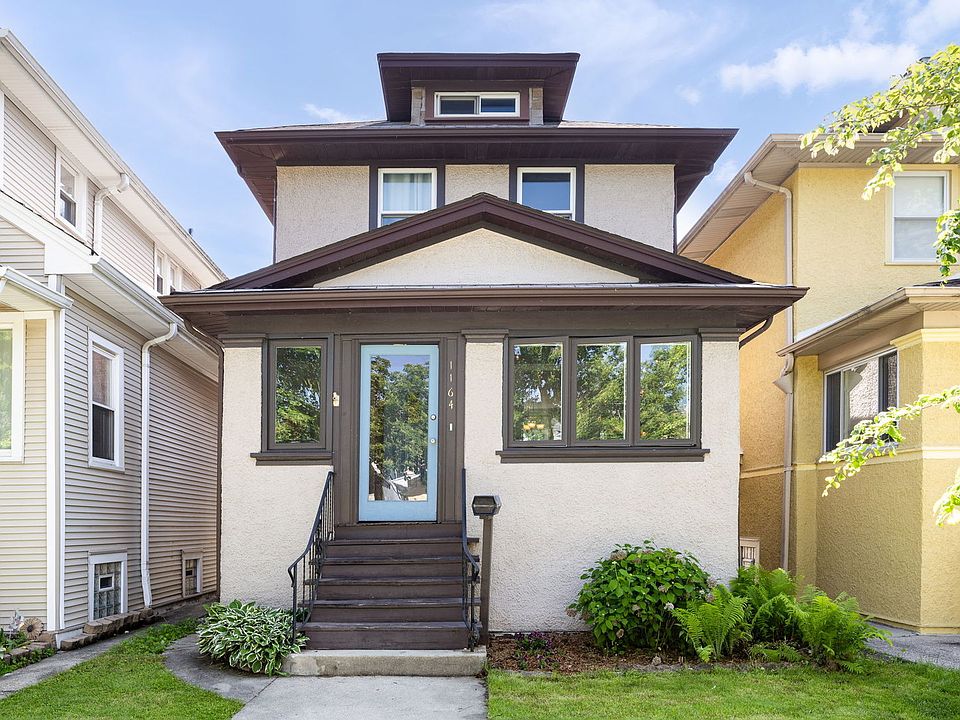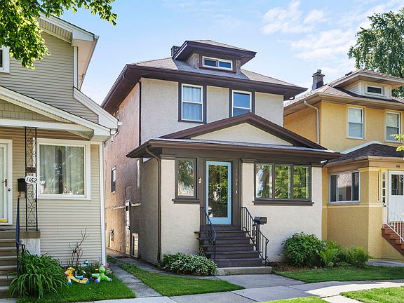 Discover your perfect home in this charming 2-bedroom, 2-bathroom residence located on a great block near schools, parks and shopping. ideal for first-time buyers or those looking to downsize. This delightful home also serves as an excellent condo alternative. Enjoy relaxing on the spacious, inviting front porch. The main floor features a combined living and dining area, and a well-appointed kitchen. Upstairs, you'll find two cozy bedrooms and a roomy full bath with a stall shower and a separate soaking tub. The finished basement offers plenty of storage, a versatile work/office/bedroom space, laundry facilities, and an additional full bath. A convenient Murphy bed is perfect for accommodating guests. The property boasts a nicely sized, fully fenced yard and a two-car garage. Numerous new windows, an HVAC system installed in 2019, and an overhead sewer with a sump pump added in 2021. 2nd floor tub motor disconnected/garage being conveyed AS IS.