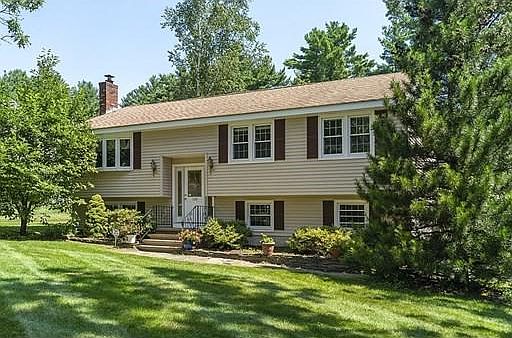 EXCITING NEW PRICE. OPEN HOUSE THIS THURSDAY, 5-630 PM. Will not last at this new price. Open concept Raised Ranch with gleaming hardwood flooring on the entire first floor and CENTRAL AIR. Only one owner and lovingly cared for. 3 bedrooms and 2 full baths, one with jacuzzi tub. Kitchen updated 5 years ago with beautiful granite counters and stainless steel appliances and updated cabinets. Huge 23 x 23 Family room on lower level has its own full bath and wood stove for economical heating this winter. Irrigation system inspected and water pressure is excellent. Enormous 2 level deck measures 320 square feet overlooks 1 acre yard that is very private. One car garage and very large driveway. House is in move in condition. Owners are looking for a closing date on or around November 1st.Tewksbury is getting a new elementary school that will serve students grades 24.
