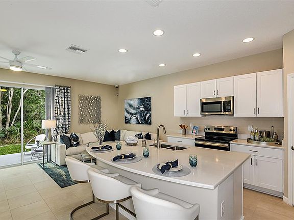 Welcome to this modern, brand-new 3-bedroom, 2.5-bathroom townhome with a 1-car garage in Edgestone at Artisan Lakes, Palmetto, FL! Enter through the front porch into the open living area and kitchen. The living room is perfect for relaxing or entertaining guests. The kitchen features a large island, beautiful cabinets, a pantry, and brand-new stainless-steel appliances. Downstairs also includes a half bathroom, a 1-car garage, and a large patio with a peaceful, private view perfect for relaxing outside. Upstairs, you will find all three bedrooms and a laundry room with a washer and dryer for your convenience. The main bedroom-owner's suite has a walk-in closet and a private bathroom with two sinks and a walk-in shower. The two other bedrooms have a full bathroom. This home includes luxury upgrades and has a beautiful Lake view. The community offers a resort style pool with cornhole, grilling area and walking paths for enjoying the weather. It's close to highways for easy commuting, and Publix, shops, and restaurants are just minutes away. Don't miss your chance come see this beautiful home today and make it yours! Available for lease on December 1, 2025.