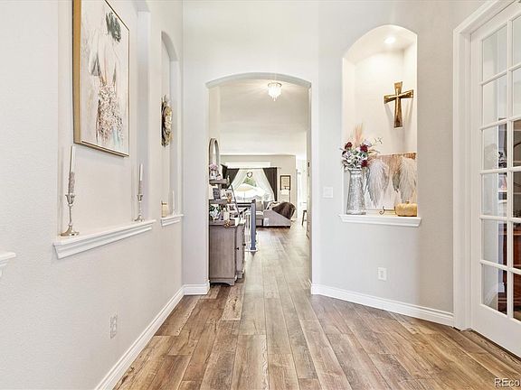Main Floor living at its best! 4 bed 3 bath Ranch Semi-custom home located in the desirable Lincoln Creek Village subdivision. This light and bright spacious ranch boasts tall ceilings, an open layout ideal for entertaining and has been updated throughout. Entertain your guests in the spacious, gourmet kitchen with an oversized center island, newer stainless appliances, double ovens, freshly refinished cabinetry new counter tops and walk-in pantry. There is also a butler’s pantry that connects to a formal dining area, perfect for dinner parties for your formal dining get togethers. At the end of the day, you can relax in your main floor primary suite, complete with a HUGE en suite 5 piece bath with walk-in closet. Other main floor features are a secondary bedroom, home office, laundry and an additional full bathroom. Want more livable square footage? Go down to the finished basement that includes a huge family room, wet bar and 2 additional bedrooms and a Large storage area. Step outside and take in those fine Colorado days and nights in your newly professional, zero-scaped fully private backyard with drip lines throughout for no maintenance, and a new fresh poured concrete patio. Updates include a class 4 roof(2022), new luxury vinyl plank flooring throughout, new lighting, quartz countertops and paint. The low HOA covers snow removal and front yard care in addition to a neighborhood park with playground thats a 2 minute walk away. Conveniently located with quick access to Lincoln Avenue, Parker Road, E-470 and minutes from the highly rated Douglas county schools, shopping, dining, parks, trails and restaurants. Book your showings today!