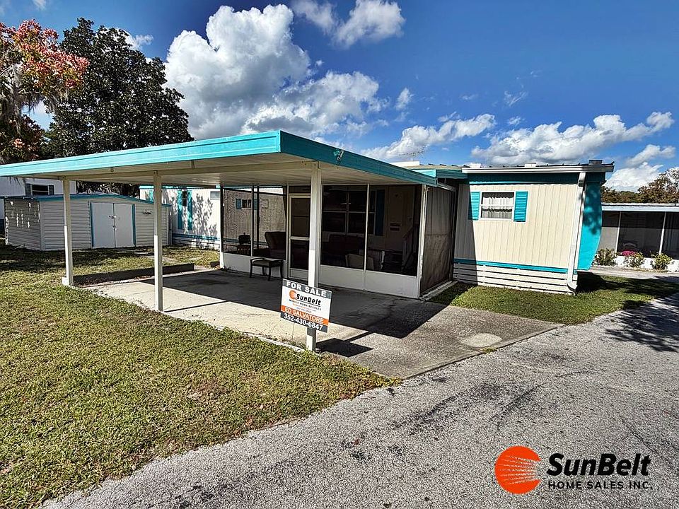 This 55 plus community has one very unique feature a huge boat house!! with fast access to Lake Eustis and the Harris chain. So you could say you can live "Cheap on the Chain" (only $75 slip fee is additional) This 2/2 home is on a corner lot and has one neighbor and is conveniently located near the Lake Square Mall, restaurants, Home Depot, Starbucks and so much more. This home has been well maintained and has a nice screen room carport and central AC system. There is a boat launch and clean station. Also the clubhouse is cute and has water views. Let's make it where the Fish Fear You Every Day! So, let's set up a tour of this great bargain. Call today!! To set up a private or FaceTime tour.