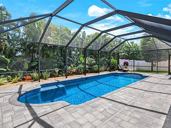 Welcome to this exquisite lakefront property in Bonita Springs, a true hidden gem within a non-gated community offering low HOA fees and unparalleled convenience. This beautifully renovated home boasts a stunning newly brick-paved pool lanai deck, a newly refinished saltwater pool, and a fenced-in side yard perfect for children and pets. Enjoy serene private landscaped views that seamlessly blend with the picturesque lake backdrop. Inside, the modernized kitchen features quartz countertops, a large breakfast bar, stainless steel Samsung appliance package, Pentair water filter, and a beautifully finished coffee/wine bar area. The property also offers the peace of mind of a newer roof, repiped plumbing throughout, and a newly epoxied garage floor. You'll enjoy a large master suite with updated bath including large walk in shower and updated vanity with quartz counter tops. All 3 additional bedrooms are spacious and functional. Updated full guest bath that also functions as your pool bath includes updated vanity, granite countertops, new lighting & fixtures and frameless shower door. Located just minutes from downtown Bonita Springs, you'll have quick access to a variety of shopping, dining, and outdoor activities, including the highly anticipated Mid-town Bonita, Coconut Point Mall, RSW, and stunning white sand beaches. This home exemplifies both tranquility and convenience in a sought-after location.