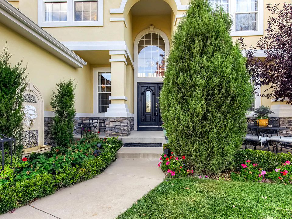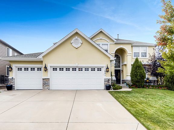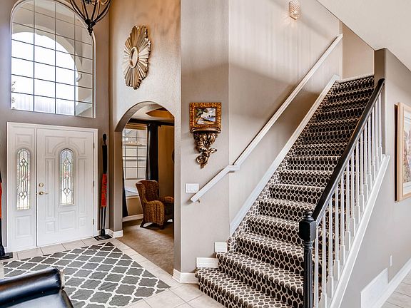 Exquisite Parker home, with main floor bedroom! This very well maintained 4 bedroom 3 bath home has a lovely floor plan, soaring ceilings, & a perfectly manicured landscape. Beautiful entry w/ office to the right, dining room to the left w/custom chandelier, updated custom carpet & paint. The light and airy family room boast soaring ceilings, updated LED lighting, gorgeous gas fireplace wood designed mantle, upgraded carpet, and custom paint detail. The gourmet kitchen, w/ granite counters, offers a top of the line Dacor gas cooktop w/downdraft on the kitchen island, GE Stainless Steel refrigerator, new Kitchen Aid Stainless Steel Convection Oven w/microwave, Kitchen Aid SS dishwasher, LED lighting. The eat-in kitchen nook has a lovely glass slider door. The spacious main floor bedroom w/ updated carpet has a beautiful bay window. The main floor 3/4 bath is next to the main floor bedroom, and includes glass shower, vanity w/custom mirror frame. The large main floor laundry room, off the garage, completes the main floor. The stairs, located off of the entry, includes a custom painted railing and beautiful custom carpeted stairs. The 2nd floor large Primary Suite has custom paint, custom chandelier-be sure to look at the Pikes Peak view from the bay window. The spacious 5 piece Primary Bath includes 2 separate vanities, glass shower, jetted tub, and dual walk-in closets. The opposite wing of the 2nd floor includes 2 more bedrooms, a light and spacious loft, and hall bath with with dual sinks and shower bath. The gorgeous professionally landscaped yard is perfectly manicured, lovely for outdoor entertaining -included in-ground fire pit, gas BBQ w/kitchen center, established trees/bushes/plants, gorgeous paved side yard gardens, updated custom (newly sealed) stamped concrete. Updates include:New SS Appliances, Newer Rheem Furnace/AC, New Window Screens, 2020 Impact Resistant roof, Newer 2-50 Gal HW Heater, Water Saving sprinklers, and more! Close to Pool, parks, golf!