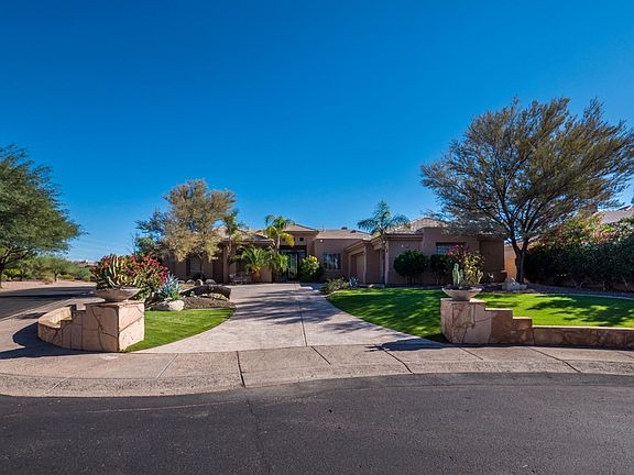Welcome to your private oasis in the desert a stunning single-story estate offering the perfect blend of luxury, space, and serenity in the private Stonegate gated community. Nestled in one of Scottsdale's most sought-after neighborhoods, this 4,100 sq ft home features 4 spacious bedrooms, 3.5 bathrooms, and impeccable design inside and out. Intelligently situated on 1/2 acre corner/culdesac lot that backs to natural wash. Dramatic curbside appeal with circular drive.