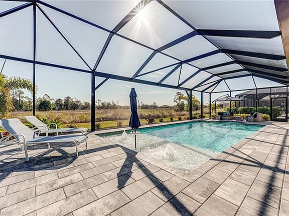 WELCOME TO FABULOUS - The community of Timber Creek is everything you dream of in a Florida community. This gated community boasts an amenity center second to none with full Clubhouse / Restaurant/Full Service Bar/ Community Pool/Spa/Fitness Center, Pickleball/Tennis/ Volleyball, and much more! The Home of your dreams for space, floorplan, and a private preserve lot is this home with the Sunset Floorplan, which is the largest single-story home in this community. Spread out with this 3 bedroom plus den, 3 car garage home with split floorplan divided by an open layout among the Great Room, kitchen, and dining room, with access to the covered lanai for outdoor entertaining. On one side is the private owner’s suite, while two secondary bedrooms are across the way. A den and three-car garage offer extra storage space. This one-owner home features the following upgrades: Custom Pool and Spa with Picture window Pool Cage, Autofill Saltwater heated pool, Storm Smart Shutters on Real Lanai and Front Door with Accordion Shutters on the side of the home for full home storm protection, Custom Interior Painting, Custom Cabinetry Wall Design for TV and enclosed electric Fireplace, all West facing windows are tinted, Extra Insulation in Attic, Laundry Room Cabinets, Custom Backsplash. The Lanai is a huge bonus to this house as it is oversized in length for the covered area then an extra large pool deck to enjoy this custom saltwater pool with chair seating and bubblers. The private preserve is the best when you wind down from an active day with just the serenity of nature. Just minutes to the airport without the noise, convenient to the interstate, shopping and dining options in all directions. Lawn Services and Internet are included in your low month homeowers fee.