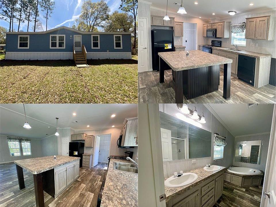 SELLER OFFERING $3,000 CLOSING COST ASSISTANCE! FHA, VA and USDA ELIGIBLE! READY FOR IMMEDIATE OCCUPANCY!! NO LOT RENT!! NO HOA. NO DEED RESTRICTIONS. YOU OWN THE HOME AND LAND. BRAND NEW 3/2 + DEN MANUFACTURED HOME with a 7 YEAR WARRANTY! Home Warranty gives you peace of mind as it covers the structure, plumbing, electric, HVAC and appliances. Beautifully designed home in a quiet neighborhood with both manufactured and site built homes located in the heart of NW Ocala horse country located only MINUTES FROM THE WORLD EQUESTRIAN CENTER AND HITS. Open floor plan includes so many great features and tons of storage space! Kitchen features a large island with seating and pendant lighting, walk-in pantry and tons of cabinet space and separate dining area. Master suite features upgraded glamour bath with double vanity with his and her sinks, walk-in shower and linen closet and walk-in closet. The den has so many excellent uses such as an office space or even a 4th bedroom if desired. Vinyl flooring throughout the home. Conveniently located from restaurants, shopping, grocery stores, Paddock Mall, entertainment and beautiful RAINBOW SPRING STATE PARK known for its kayaking and outdoor activities. THIS HOME IS A MUST SEE TO APPRECIATE AND WILL NOT LAST! Adjacent properties also available (OM691443, OM691449 and OM691437).