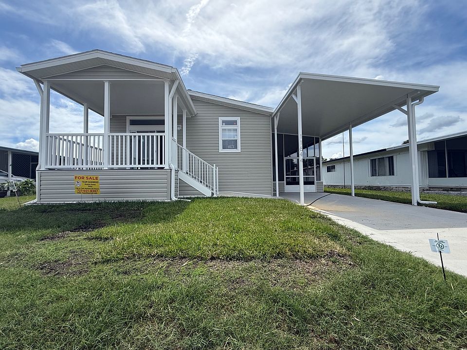 Brand New 2024 Home in 55+ Community. Currently accepting applicants 45 years and older - Never Lived In! Financing Available! Welcome to your dream home in a welcoming 55+ community offering 6 months FREE lot rent! This 2024-built mobile home has never been lived in and is completely move-in ready with stylish finishes and spacious design. Home Features: 2 Bedrooms | 2 Bathrooms Generous floor plan, Beautiful farmhouse-style kitchen with stainless steel appliances, Large front porch - perfect for relaxing mornings, Screened-in lanai - enjoy the Florida weather without the bugs. Storage shed for extra storage. This home is designed with comfort and modern style in mind, from the open-concept living area to the high-end finishes throughout. Whether you're entertaining guests or enjoying quiet evenings at home, you'll love the thoughtful layout and natural light. Financing available (WAC) through 21st Mortgage. Monthly lot rent after free six months is $ 820.00 includes water, sewer, trash and lawn care. Don't miss this opportunity to own a brand-new home in a vibrant, active community with amazing amenities and a generous lot rent incentive. Schedule your tour today! Contact us now for more information or to arrange a showing
