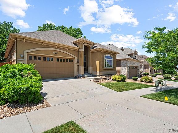 This beautiful low maintenance ranch home is perfectly nestled in the Lincoln Creek Village family friendly community with many shopping and dining amenities, beautiful parks, schools and a short distance to the I-25 Corridor and the Denver Tech Center. You're sure to enjoy the low maintenance stucco exterior and having the HOA mow your lawn and clear your driveway and sidewalks of snow. The spacious 2,100 square foot main level of this home features single level living at it's finest with enormous rooms, an open floor plan, a plethora of windows and low maintenance tile flooring. You will love the chef's gourmet kitchen with commercial quality, top of the line Wolf & Sub Zero appliances including a Wolf double oven, Wolf cooktop with a down draft, a professional size Sub Zero refrigerator, granite countertops and a large island perfect for meal prep and a breakfast bar. The bright and airy living room boasts tile floors, 10 foot ceilings and picture windows radiating lots of natural light and views of the professionally landscaped backyard with colorful flowers and lush succulent plants. The oversized primary suite features an abundance of windows with views of the private backyard and a luxurious primary bath with slab granite countertops, his and hers vanities, a large custom walk-in shower and an enormous walk-in closet with a built in Elfa closet system. The landscaped backyard is the perfect oasis for relaxing or having a family barbeque with the meticulously landscaped grounds, a drip irrigation system with lots of plants, flowering bushes and artificial turf grass to enjoy all season long. The large unfinished lower level is ready for you to finish to suit the needs of your growing family, or it could make a perfect area for entertaining family and friends. All furniture, art and electronics are included.