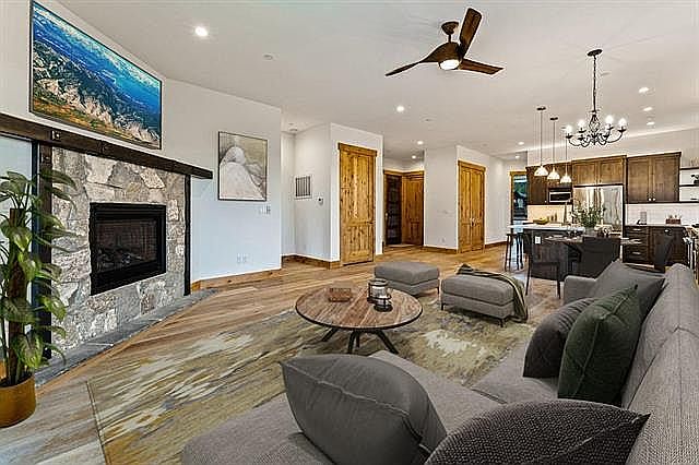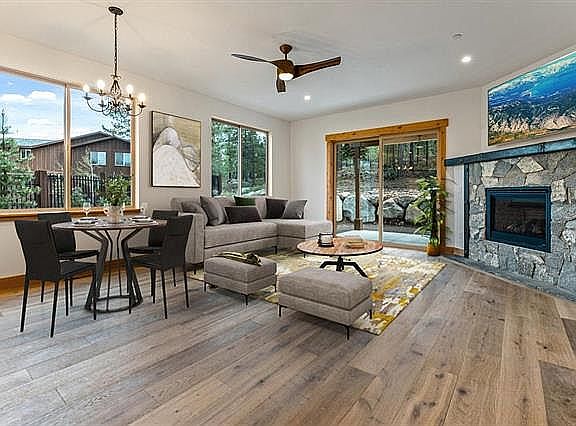 Beautiful brand new condo offers a luxurious and contemporary living experience. Boasting exceptional craftsmanship and a prime location, this residence is a perfect blend of elegance, comfort and natural beauty. As you step inside, you are greeted by an open-concept layout that exudes a sense of spaciousness and modernity. The thoughtfully designed living area is bathed in natural light streaming through large south facing windows, offering views of the forest and lush landscapes. With 10' tall ceilings and tasteful finishes, this unit creates an ambiance of sophistication and serenity. Unit#1 resides on the first floor serviced by an elevator or stairs. The gourmet kitchen is a chef's dream, featuring top-of-the-line stainless steel appliances by Viking, sleek quartz countertops, and ample storage space. Whether you're hosting intimate gatherings or preparing a meal for yourself, this kitchen is sure to inspire culinary creativity. Adjacent to the kitchen is a stylish dining area, perfect for enjoying meals. The condo offers 2 bedrooms and a spacious den as another bedroom without a closet, each designed with comfort and relaxation in mind. The primary suite is a true oasis, complete with a large closet and a luxurious en-suite bathroom featuring double vanities, heated floor, a soaking tub, and a separate shower. The additional bedroom and den are generously sized and provide versatility for various needs, such as a home office or a guestroom. One of the highlights of this condo is its outdoor living spaces. Step out onto the private deck and revel in the breathtaking vistas that surround you. This is the ideal spot to unwind after a long day or to savor a morning cup of coffee while taking in the crisp mountain air. Residents of The Boulders enjoy an array of amenities, including a community clubhouse, fitness center, and a sparkling pool, perfect for staying active or relaxing on warm summer days. Bocce ballcourts, sand volleyball, and horseshoe pits with picnic areas too. With proximity to Truckee's charming downtown area, as well as renowned ski resorts and hiking trails, this condo offers the best of both worlds—a tranquil retreat in nature with easy access to modern conveniences. Don't miss this incredible opportunity to own one of the last brand-new condos to be built at The Boulders. Schedule a showing today and experience the epitome of luxurious mountain living. Photos are of similar lower level unit.