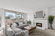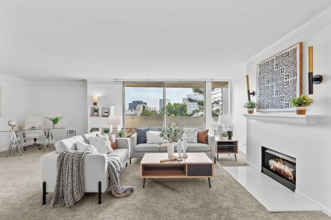 Located in one of Brentwood's premier residential pockets, this beautifully refreshed top-floor, one-bedroom home offers 852 square feet of bright, welcoming living space with treetop and city views. An open layout introduces a spacious living room with a sleek gas fireplace, crown molding, and oversized windows that fill the home with ...