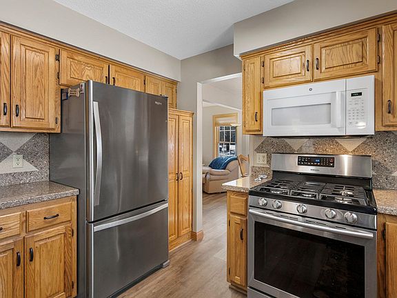 If you are looking for a home that is move in ready, make sure you take time to come see your new home! Enjoy your morning coffee, when weather permits, on the front porch or patio area which is only the beginning. This meticulously maintained traditional 2 story has four bedrooms on one level. Main level living room, both formal & informal dining & familyroom. Kitchen has sile stone countertops & some updated appliances with a great view of the backyard. Luxury vinyl on main level. Family room boasts a woodburning fireplace & walkout to a well sized 2021 built deck w/a retractable canopy. Garage service door opens to the laundry & you are steps from the 1/2 bath. Primary bedroom is spacious, includes a walk-in closet, remodeled bath with sile stone countertops & large walk-in shower. Primary walls are not directly common to any of the remaining 3 bedrooms which affords additional privacy. One of the bedrooms is currently used as an exercise room/office. Some rooms have darkening blinds. Basement is unfinished. 96% efficient furnace installed in 2016. Siding replaced in 2008. New roof w/complete tear off & replacement in 2024 by Lindus Construction. Radon mitigation system installed in 2017. Three car garage. Cul-de-sac location. Elm Creek Park & all it's amenities is practically your neighbor. I could go on & on but then you might miss your opportunity.