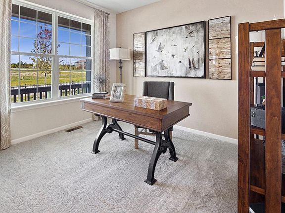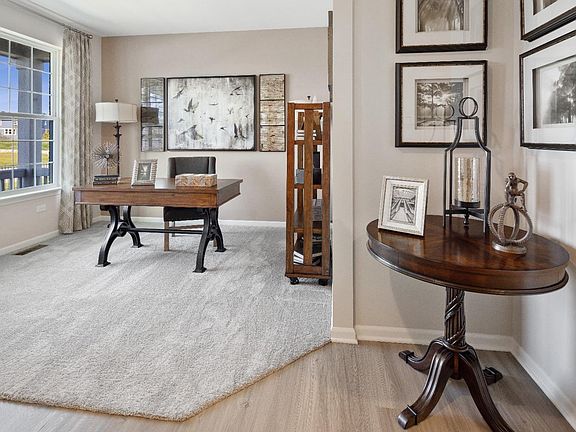 The Napa Ranch features 2 bedrooms, 2 bathrooms, and an open, light & airy concept with additional den, perfect for an in-home office! Kitchen, dining, and great room will amaze you!! This home is an entertainer's dream. Primary en suite is spacious with large WIC. Offering the latest in connectivity features, all homes will have a Ring Video Doorbell Pro, Ring Alarm Security kit, MyQ Smart Garage control, Flo by Moen Smart Water Shut-off system and Honeywell smart thermostat. Aylesworth is a BRAND-NEW community located in Crown Point school district and offers a community pool, pool house, splashpad, playground, firepit and walking trail. Lawn care and snow removal included with monthly HOA!! Stock photos are being used and may vary from home.