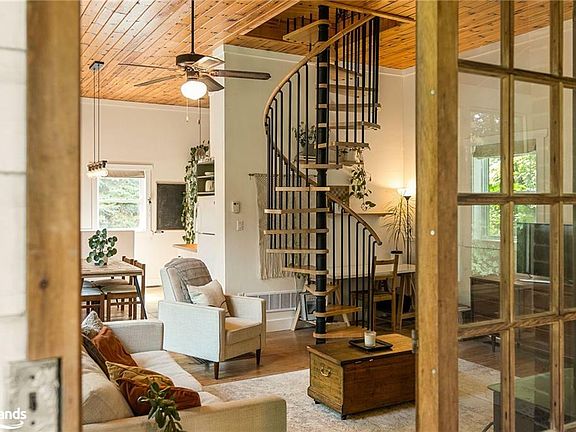 Own a piece of Minden history with this beautifully renovated century old schoolhouse. This unique 2 bedroom and 1 bathroom home shows to perfection, encompassing a perfect blend of old world charm and modern amenities with its solid maple floors, stunning 11 ft ceilings, stylish kitchen, contemporary spiral staircase and screened in porch overlooking a picturesque ravine. Nestled in a private setting, this property offers serene surroundings and the convenience of being close to the Horseshoe Lake public beach and Minden White Water Preserve. Completely updated in 2019 including new forced air propane furnace, WETT certified woodstove, electrical, new bathroom, insulation and metal roof. Ideally located between Minden and Haliburton, this home has a perfect balance of seclusion and easy accessibility being located on a municipally maintained road. Don't miss your opportunity to own this exceptional property!