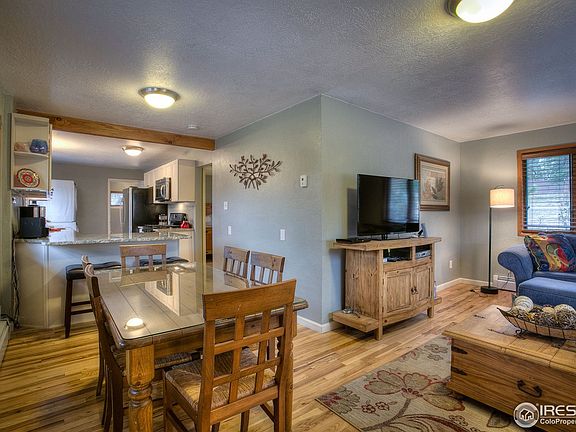 Natural luxury for your enjoyment in this fully remodeled 2 bed 2 bath home. Modern updates including hickory floors, new shaker kitchen cabinets, stainless steel appliances make this turnkey property ready for relaxation in Estes. Previously a successful STR! Major upgrades include new boiler, roof, ext paint and deck. The private deck is a prime spot to watch the visiting wildlife like elk, turkeys, and birds. Plenty of storage in the large 2 car garage. Easy access to RMNP and town. No HOA!