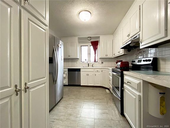 Freshly updated townhouse located on beautiful Enfield St. and is convenient to highway and shopping. This charming home has so much to offer. The kitchen has newer tile counters; tile floor and back splash and SS appliances. The half bath has a new vanity w/granite counter, tile floor and toilet. The main bath also has a new tile floor; new toilet and double sink vanity w/granite. Laminate wood floors were installed 5 yrs ago, The MBR has had additional closets added with one being used as a neat computer area. In 2017 a new gas furnace and central air conditioning unit were installed. Also new windows were installed in 2017 in the bedrooms offering better sound protection. The spacious basement is ideal for storage or for future expansion. Finally you will also have the opportunity to enjoy the outdoors in the private patio area which is surrounded by new fencing.