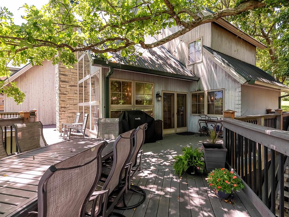Discover this beautifully remodeled 6-bedroom luxury lakefront home on the shores of Lake of Egypt, offering exceptional craftsmanship, modern upgrades, and stunning water views. Fully updated in 2017 (with the exception of the bunk room), this move-in ready waterfront property blends timeless timber-frame architecture with today’s sought-after finishes. The vaulted great room features floor-to-ceiling windows, natural wood beams, and a stone fireplace, creating a warm and inviting gathering space. The remodeled kitchen and dining area offer abundant seating and seamless flow for entertaining. Outside, enjoy expansive wrap-around decks, shaded sitting areas, a walkout patio, and beautifully terraced natural rock landscaping. The property sits on deep, clear water with a private covered dock, shoreline platform, and easy access for swimming, boating, and lake activities. A playground and mature trees complete the perfect lakefront setting. Located in the peaceful Sugar Creek area, this waterfront home offers quiet living just minutes from the Shawnee National Forest, state parks, wineries, biking trails, and all Southern Illinois outdoor recreation. A rare opportunity to own a fully remodeled, luxury lakefront property in one of the region’s most desirable real estate markets. Currently a vacation rental with professional management in place. Turn key option with furnishings negotiable. 2012 Cobalt 200 Ski Boat and 2005 RANGER 185US Fishing Boat also negotiable.